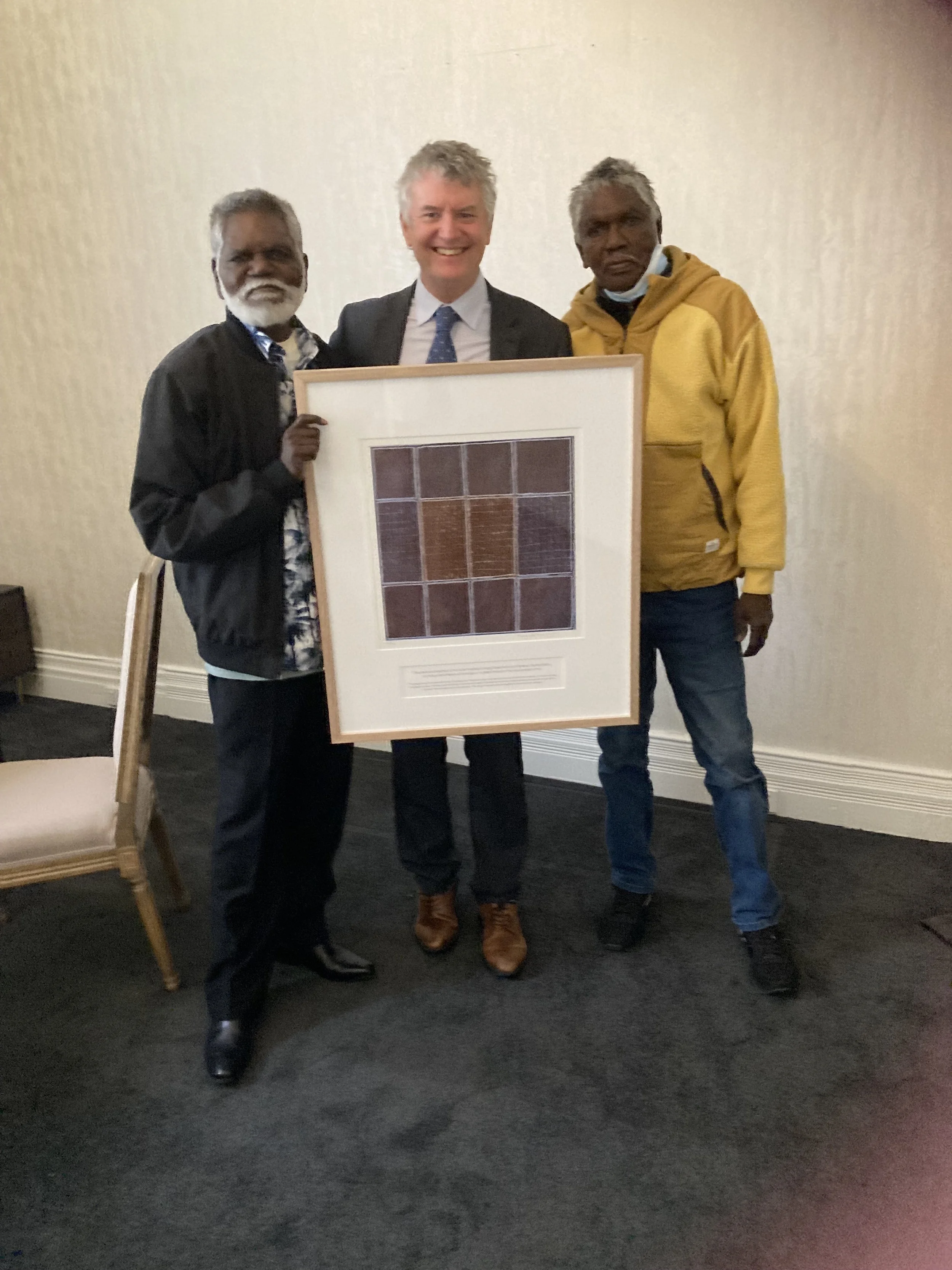 Receiving a painting from a former patient from Arnhem Land
